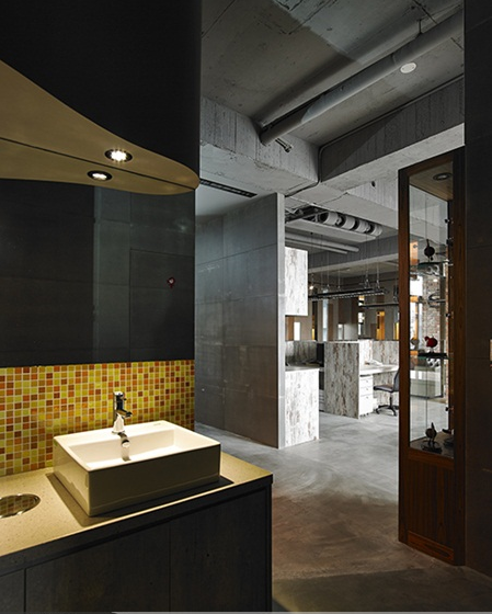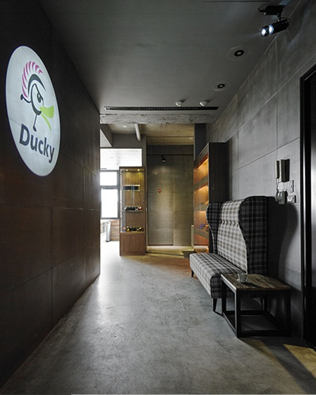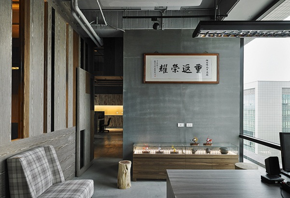 ▲進(jìn)門的玄關(guān)處,以水泥墻搭配公司顯眼的 LOGO,充分展現(xiàn)出低調(diào)簡約的個性;輔以仿古沙發(fā)的雅致,流露出深度的內(nèi)涵