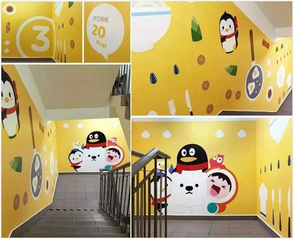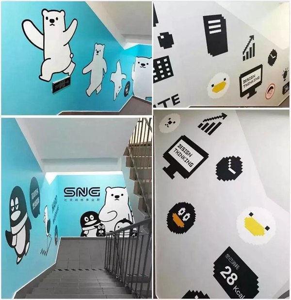 ▼騰訊SNG辦公樓萬利達大廈“QQfamily”主題樓梯間