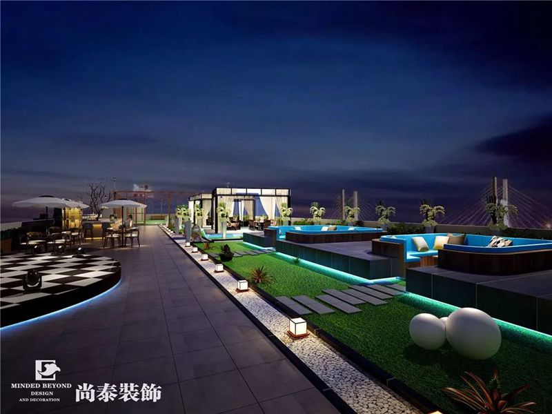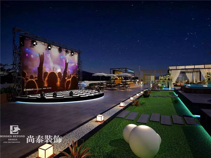 花園創(chuàng)意式的藝人表演&活動(dòng)中心位于頂樓區(qū)域,主要用于日常表演、舉辦活動(dòng),休閑聚會(huì)等等。作為年輕藝人的天地,舞臺(tái)必不可少,金屬材質(zhì)和大理石等材質(zhì)的使用契合搖滾、狂野的氛圍,開(kāi)放愜意的環(huán)境讓這里也成為藝人釋放壓力、放松心情的一個(gè)空間。