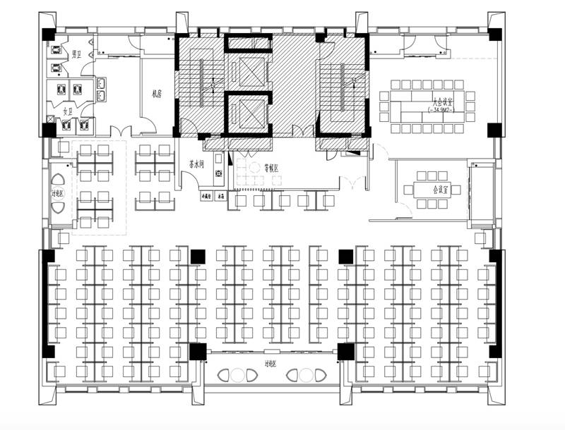 基本需求辦公室、會(huì)議室、工位、接待區(qū);開(kāi)放式會(huì)議區(qū)、茶水區(qū)、休閑區(qū)、小郵局等;