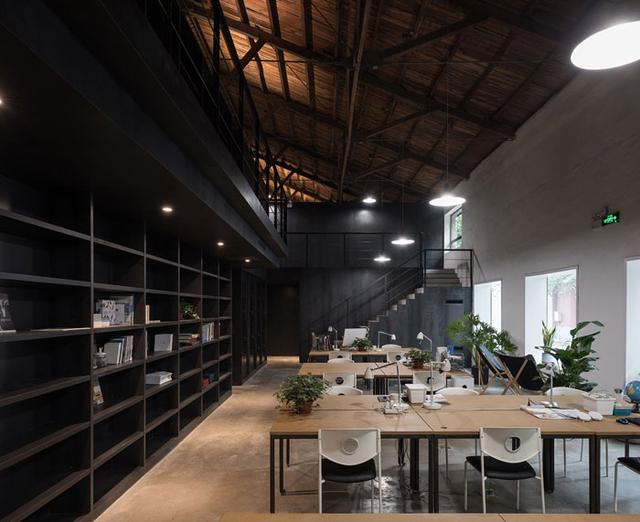 Loft廠房辦公室裝修共有上、下兩層樓,一樓為辦公區(qū)域,二樓為休閑區(qū)和閱讀區(qū)域。