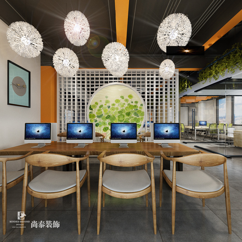 簡單利落的線條組成了大方的背景墻,搭配小型實用立面柜,貫徹了企業(yè)“環(huán)?!薄ⅰ熬G色”的文化理念。